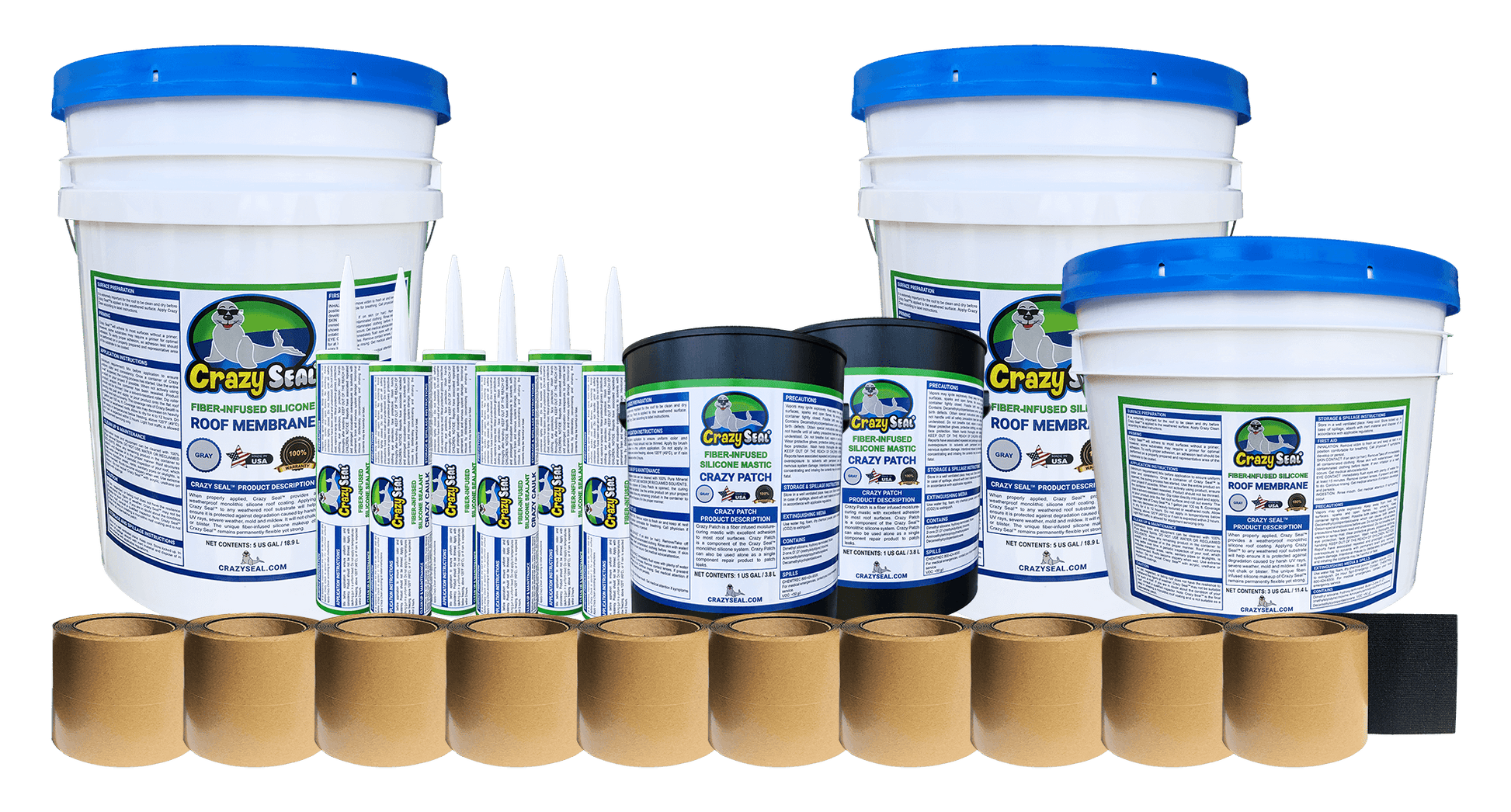 Direct to Deck Kits come with enough Crazy Caulk and Crazy Patch to seal your seams and penetrations, enough Crazy Tape to seal your wood seams and edges, and enough Crazy Seal to apply two layers of the Crazy Seal Roof Membrane directly to a wood surface.